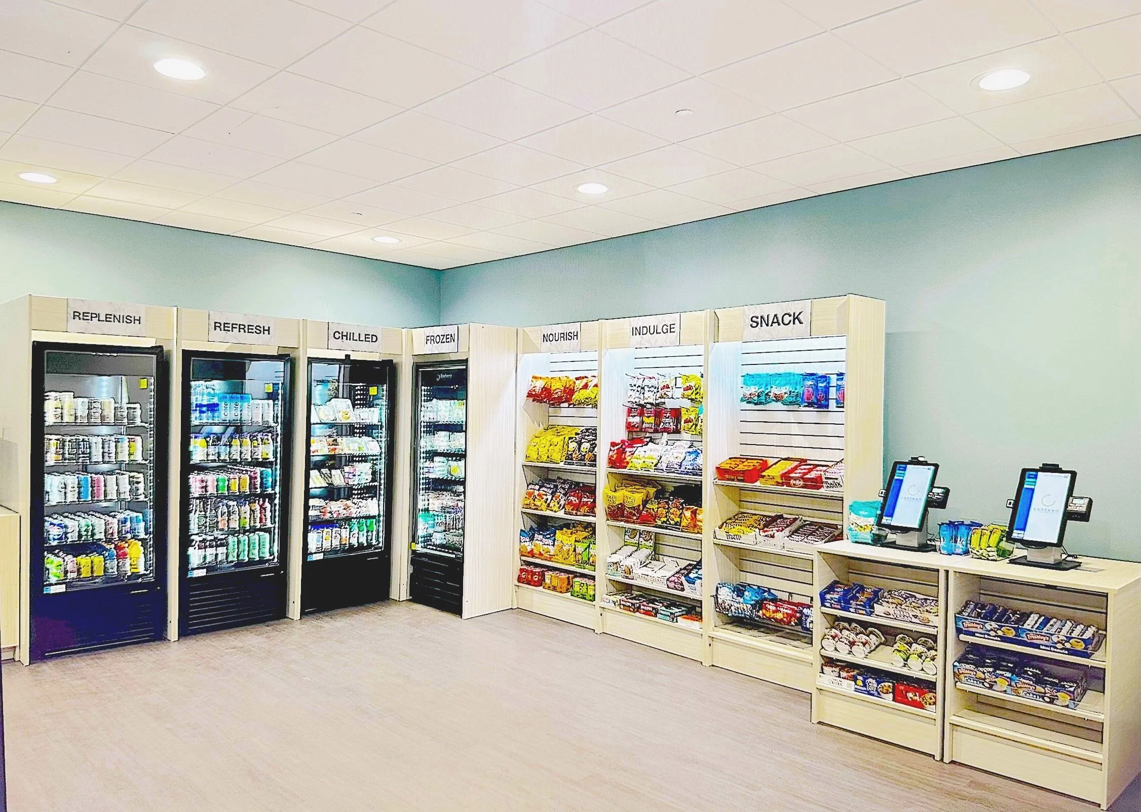 Our smart coolers are ideal for most locations. However, for partners looking for micro markets with greater selection, our open markets are the perfect choice. These essentially create a modern mini convenience store on-premise as the ultimate luxury amenity for your community. Being “open,” and unattended, they are best suited for restricted-access areas, such as employee break rooms, or resident-only access areas. Similar to our smart cooler option, our team will install, restock, and maintain the open market at no cost to our partner locations. We also offer revenue share to our partners for this option. If interested in our open market option, please inquire for further information.